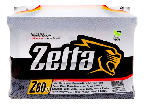 Bateria De Carro Zetta 60ah Amperes Z60d Moura S/troca Direito